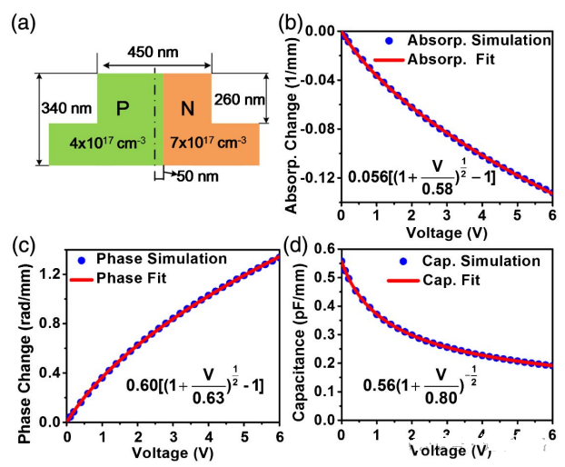 Here, only the application of silicon optical modulator for FMCW is discussed. In reality, the effect of silicon optical modulator is not as good as that of LiNO3 modulator, mainly because in silicon optical modulator, the phase change/absorption coefficient/junction capacitance is non-linear with the voltage change, as shown in the figure below: