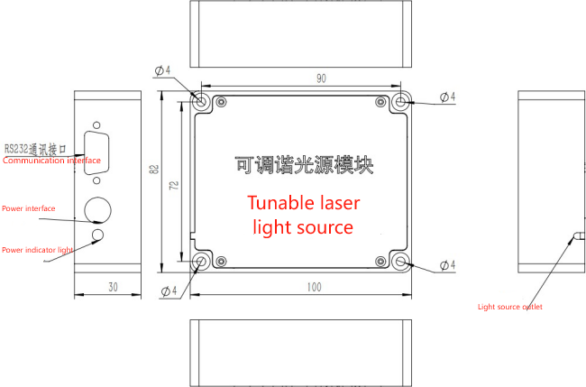 Figure 2 Mechanical dimension diagram of tunable light source module