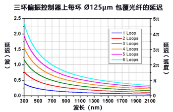 The above figure shows the test results of the three ring polarization controller on Ø 80 µm and Ø 125 µm coated optical fibers, with a controller loop diameter of 56mm. A larger ring diameter is very suitable for optical fibers with high bending losses.