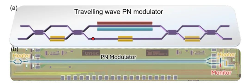 The electrical section mainly consists of the PN junction section that needs to change the refractive index at high frequency, and the traveling wave electrode structure that matches the speed of the electrical signal and the optical signal. The principle of changing the refractive index is the plasma dispersion effect, also known as the free carrier dispersion effect. It refers to the physical effect that when the concentration of free carriers in a semiconductor material changes, the real and imaginary parts of the material’s own refractive index also change accordingly. When the carrier concentration in semiconductor materials increases, the absorption coefficient of the material increases while the real part of the refractive index decreases. Similarly, when the carriers in semiconductor materials decrease, the absorption coefficient decreases while the real part of the refractive index increases. With such an effect, in practical applications, the modulation of high-frequency signals can be achieved by regulating the number of carriers in the transmission waveguide. Eventually, 0 and 1 signals appear at the output position, loading high-speed electrical signals onto the amplitude of the light intensity. The way to achieve this is through the PN junction. The free carriers of pure silicon are very few, and the change in quantity is insufficient to meet the change in refractive index. Therefore, it is necessary to increase the carrier base in the transmission waveguide by doping silicon to achieve the change in refractive index, thereby achieving higher rate modulation.