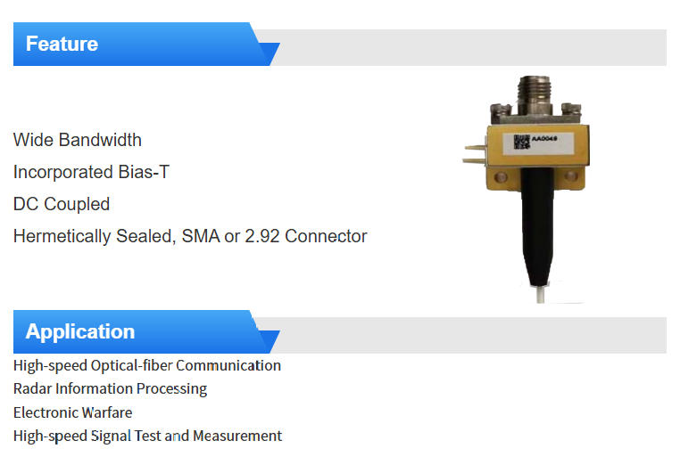 InGaAs is one of the ideal materials for achieving high-speed and high-response photodetectors. Firstly, InGaAs is a direct bandgap semiconductor material, and its bandgap width can be regulated by the ratio between In and Ga, enabling the detection of optical signals of different wavelengths. Among them, In0.53Ga0.47As is perfectly matched with the InP substrate lattice and has a very high light absorption coefficient in the optical communication band. It is the most widely used in the preparation of photodetector and also has the most outstanding dark current and responsivity performance. Secondly, both InGaAs and InP materials have relatively high electron drift velocities, with their saturated electron drift velocities both approximately being 1×107cm/s. Meanwhile, under specific electric fields, InGaAs and InP materials exhibit electron velocity overshoot effects, with their overshoot velocities reaching 4×107cm/s and 6×107cm/s respectively. It is conducive to achieving a higher crossing bandwidth. At present, InGaAs photodetectors are the most mainstream photodetectors for optical communication. Smaller-sized, back-incident, and high-bandwidth surface incident detectors have also been developed, mainly used in applications such as high speed and high saturation.