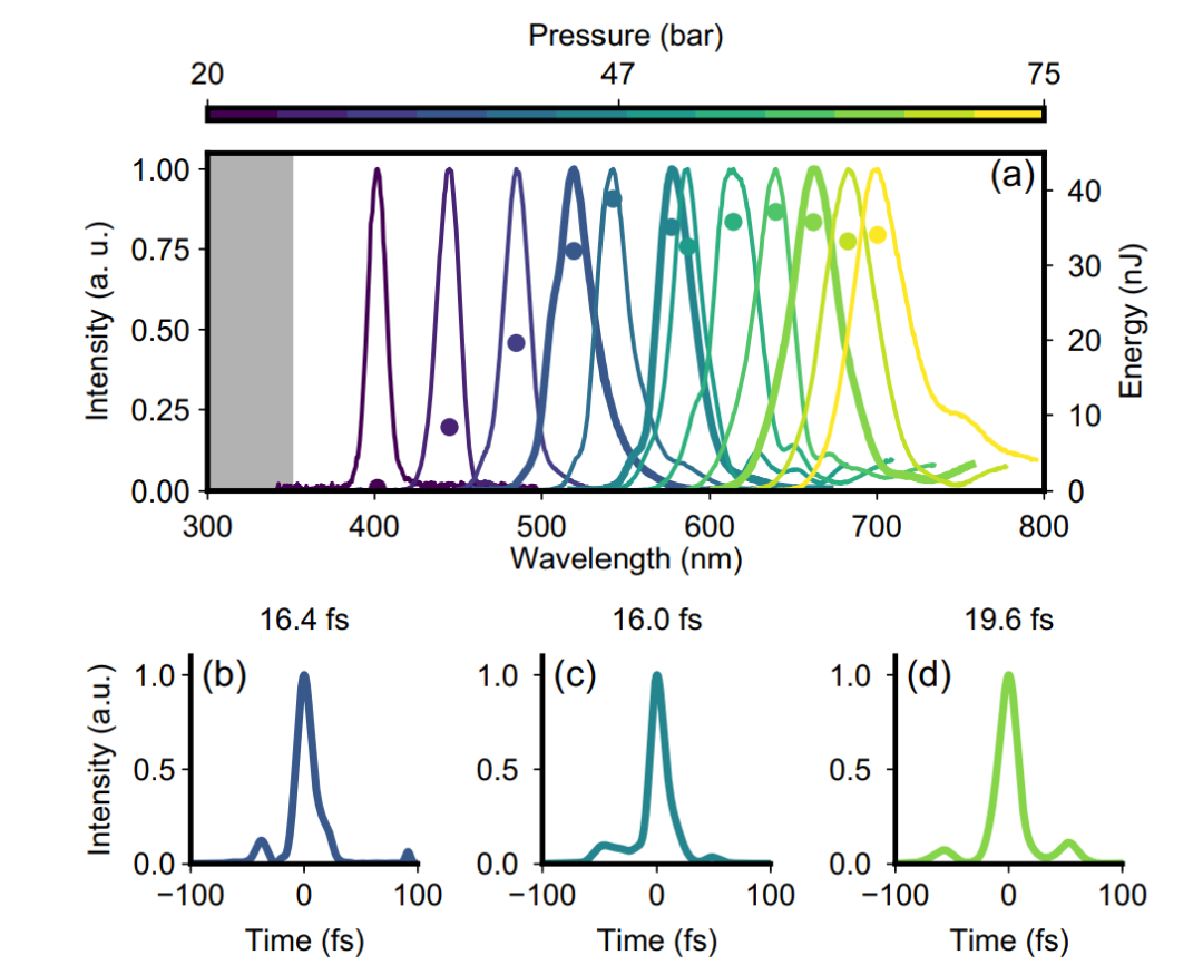 The core highlight of this technology lies in the combination of two cutting-edge methods: “Gain-Managed nonlinear Amplification (GMNA)” and “Resonant Dispersive Wave (RDW) emission”. In the past, to obtain such high-performance tunable ultrashshort pulses, expensive and complex titanium-sapphire lasers or optical parametric amplifiers were usually required. These devices were not only costly, bulky, and difficult to maintain, but also limited by low repetition rates and tuning ranges. The all-fiber solution developed this time not only significantly simplifies the system architecture but also greatly reduces costs and complexity. It enables the direct generation of sub-20 femtosecond, tunable to 400 to 700 nanometers and beyond high-power pulses at a high repetition frequency of 4.8 MHz. The research team achieved this breakthrough through a precisely designed system architecture. Firstly, they utilized a fully polarization-preserving mode-locked ytterbium fiber oscillator based on nonlinear amplification ring mirror (NALM) as the seed source. This design not only ensures the long-term stability of the system, but also avoids the degradation problem of physical saturated absorbers. After preamplification and pulse compression, the seed pulses are introduced into the GMNA stage. GMNA utilizes self-phase modulation and longitudinal asymmetric gain distribution in optical fibers to achieve spectral broadening and generate ultrashort pulses with nearly perfect linear chirp, which are ultimately compressed to sub-40 femtoseconds through grating pairs. During the RDW generation stage, researchers used self-designed and manufactured nine-resonator anti-resonance hollow-core fibers. This kind of optical fiber has extremely low loss in the pump pulse band and the visible light region, enabling the energy to be efficiently converted from the pump to the dispersed wave and avoiding the interference caused by the high-loss resonant band. Under the optimal conditions, the dispersion wave pulse energy output by the system can reach 39 nanojoules, the shortest pulse width can reach 13 femtoseconds, the peak power can be as high as 2.2 megawatts, and the energy conversion efficiency can be as high as 13%. Even more exciting is that by adjusting the gas pressure and fiber parameters, the system can be easily extended to the ultraviolet and infrared bands, achieving wideband tuning from deep ultraviolet to infrared.