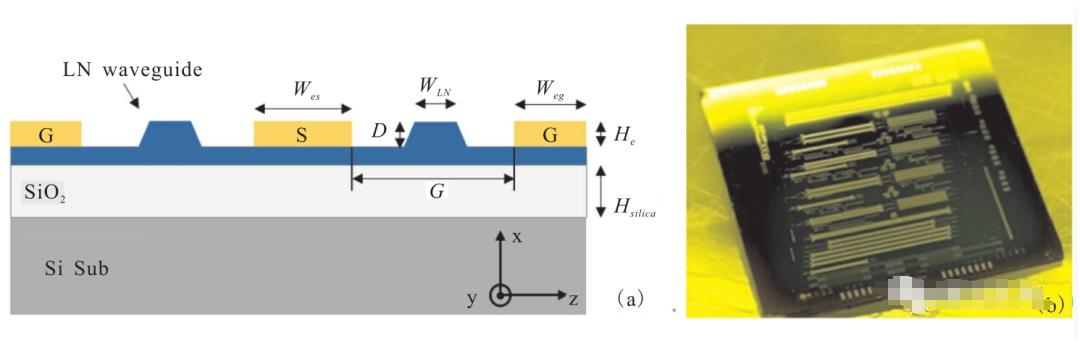 Fig.2 (a) Waveguide and electrode structure and (b) coreplate of LN modulator