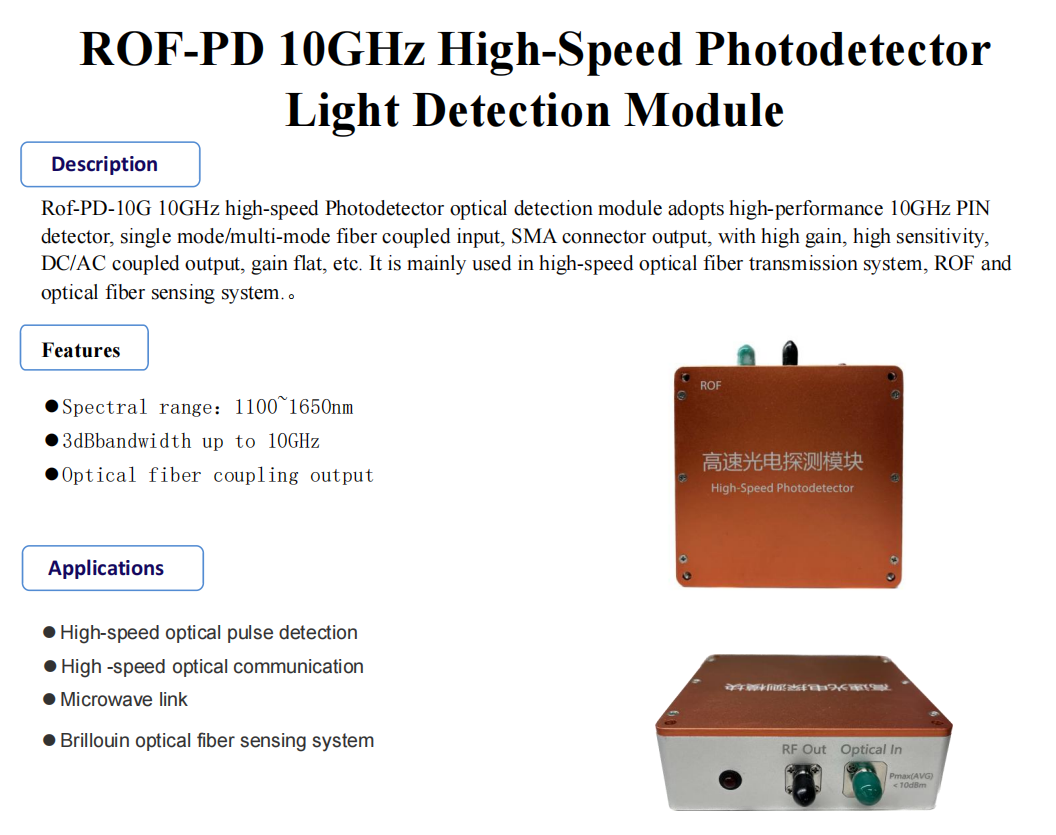 PN photodetector is formed by the contact between P-type semiconductor material and N-type semiconductor material. Before the contact is formed, the two materials are in a separate state. The Fermi level in P-type semiconductor is close to the edge of the valence band, while the Fermi level in N-type semiconductor is close to the edge of the conduction band. At the same time, the Fermi level of the N-type material at the edge of the conduction band is continuously shifted downward until the Fermi level of the two materials is in the same position. The change of the position of conduction band and valence band is also accompanied by the bending of the band. The PN junction is in equilibrium and has a uniform Fermi level. From the aspect of charge carrier analysis, most of the charge carriers in P-type materials are holes, while most of the charge carriers in N-type materials are electrons. When the two materials are in contact, due to the difference in carrier concentration, the electrons in N-type materials will diffuse to P-type, while the electrons in N-type materials will diffuse in the opposite direction to the holes. The uncompensated area left by the diffusion of electrons and holes will form a built-in electric field, and the built-in electric field will trend carrier drift, and the direction of drift is just opposite to the direction of diffusion, which means that the formation of the built-in electric field prevents the diffusion of carriers, and there are both diffusion and drift inside the PN junction until the two kinds of motion are balanced, so that the static carrier flow is zero. Internal dynamic balance.