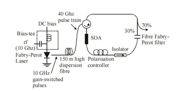 Figure 1 Fiber laser with integrated SOA for generating optical pulses